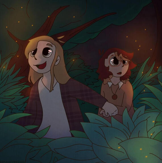 A scene is more focussed on the environment than other commission options. It has a more complex background by default and is usually a fullbody. No need to pay extra for props, as they’re basically part of the scene/background.
